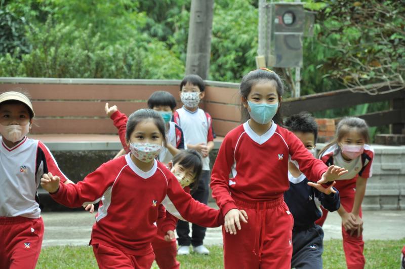 來到開心農場,要先走一小段爬坡,但同學們不喊累,因為好玩的事物就在眼前。來到園區同學們紛紛躍躍欲試,想要挑戰這次所有的闖關活動。首先是音樂團康,有趣的「老師說」遊戲考驗著孩子的專注力,被淘汰出局的孩子很是懊惱。再來是可愛的「歡迎光臨麥當勞」考驗同學間的默契,聽到幾號餐就要依據數字找到相同數量的同學牽手才算過關,看到孩子手忙腳亂的樣子,真是可愛到不行。還有大家最喜歡的「一、二、三木頭人」,緊張的暫停動作,讓孩子興奮不已。更不用說考驗大家靈活腳步的「竹竿舞」,第一次跳很害怕被夾到,但第二次習慣節奏之後,反而跳到欲罷不能,拉著創辦人一起跳竹竿舞,開心極了!另外還有訓練膽量與信心的山訓場,山訓場雖然不高,但攀爬繩網、輪胎障礙、獨木橋、木桶區、蜘蛛繩網區等設計,讓孩子需要點技巧才能闖關成功。今年更設計讓小朋友自己當關主猜拳,猜輸的就只能繞回去從頭再來。最精采的重頭戲是高難度的高空繩索,每個年級挑戰一段,看孩子們小心翼翼的抓緊繩子、踩穩腳步,最後成功走完全程,完成後高舉雙手為自己歡呼喝采,班上同學也互相加油打氣,直呼明年還要繼續挑戰。最後一項關卡則是班級競賽,從推大球到用浮條夾球接力,不管是班級對抗賽還是男女對抗賽,每位同學都卯足全力,一棒接一棒的努力完成任務,各班的孩子運用智慧,互相傳授通關技巧,此起彼落的加油聲,讓現場High到最高點。