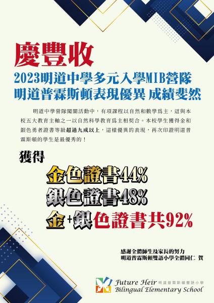 111學年度「私中多元入學明道普霖斯頓小學最具優勢」