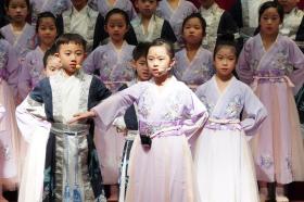 孩子們換上古裝,模仿古人說詩吟語唯妙唯肖。