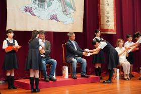 接著所有同學以三鞠躬禮感謝老師平日的教導,師生間的互動莊嚴又溫馨,陳榮富校長也代表學校向所有師長獻上感謝與祝福,並提醒所有孩子在未來要認真學習、勿忘師恩。