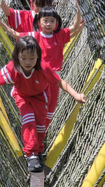 在高高的天空之中,懸掛著一條神秘的「天空之橋」。一年級的小勇士們帶著滿滿的勇氣迎接挑戰,他們雙手緊緊抓牢,像是在走過雲端小徑般,小心卻堅定地一步一步前進,最後成功走完整段路程,為自己贏得第一枚勇氣勳章。二、三年級的勇士們則面對更艱難的魔幻迷宮內的一座搖晃的魔法橋,必須同時運用手腳力量來平衡身體才能通過。曾經停下腳步的孩子們,這一次在老師的鼓勵與守護下,深吸一口氣,勇敢地跨上挑戰。一步、兩步……他們戰勝了心中的恐懼,終於抵達彼端,所有人都成為了真正的天空探險家。 這次的【開心農場大冒險】圓滿成功!孩子們在活動中收穫了象徵勇氣的果實,相信未來在面對挑戰與困難時,都能更加迎刃而解。最後特別感謝創辦人提供這麼棒的場地,讓孩子們能自在奔跑、盡情揮灑笑容。