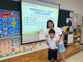 哇! 注音符號闖關成功了! 這種遊戲式的評量,既能學習又能遊戲,強化了學生對注音符號的認識與應用,闖關結束後,孩子們的臉龐滿是挑戰成功的自信笑容,師長們也備感欣慰! 在學習注音符號的路上,透過孩子每天持之以恆的複習,搭配家長的陪伴學習,讓孩子們可以在浩瀚的學海中,不斷的充實知識,不斷的成長茁壯!