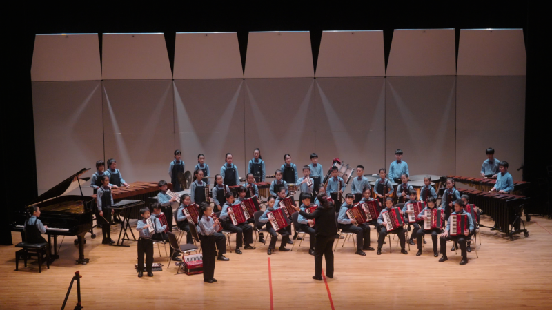 本屆比賽的指定曲為《Do-Re-Mi》,這首樂曲出自著名電影《真善美》的經典配樂。旋律以階梯式上升的音階構成,輕快活潑、充滿童趣。在孩子們的演奏中,樂曲更顯得可愛俏皮而富有動感,彷彿將音樂中的歡樂氣氛傳遞給在場的每一位聽眾。而自選曲則是難度最高等級的五級曲《與鯨共航》。這首作品在李箴老師的巧妙改編下,呈現出更豐富的音樂張力。樂曲時而氣勢磅礡、時而細膩流動,每一段旋律都彷彿帶領聽眾進入電影般的情境。孩子們在演奏中展現出極佳的默契與穩定度,各個聲部之間相互呼應,使音樂時而高亢激昂、時而深沉壯闊,宛如捕鯨船航行在洶湧的大海之中。壯麗的音樂線條與緊湊的速度感交錯呈現,讓整首作品充滿戲劇張力。在場陪伴比賽的家長與師長們,也隨著孩子們的演奏進入音樂的世界,許多人都被這動人的旋律深深感動得熱淚盈眶。當最後一個音符落下,全場響起熱烈的掌聲,那一刻大家都知道——我們真的做到了!再一次邁向卓越,再一次迎來成功。