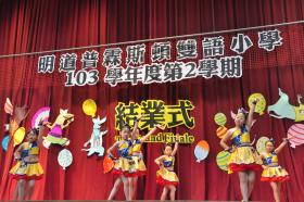 103學年度下學期的最後一天,明道普霖斯頓舉辦了結業式,有表揚英語、中文期末成績優異以及各項比賽優異的小朋友,還有頒發惠明音樂代表團,孩子們用感動人心的音樂將愛無私地奉獻給惠明育幼院,並代表學校致贈許多有聲書、CD與愛心發票,讓全校的愛心可以傳遞給更多需要的小朋友。部分社團的小朋友們在此時展現這半年來的學習成果,熱鬧十足的演出贏得了全場的掌聲。
