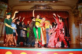 為了本屆會讀書又喜愛表演的孩子,今年的畢業典禮特別以『終極英雄榜』為主題,跟著每位英雄一起打擊邪惡、維護正義、克服困難、創造歷史事蹟, 8個畢業班也特別選擇了不同的英雄故事,跟著博物館驚魂夜的法老王金牌,讓英雄們一一復活,見證法老王金牌的奇蹟。個個畢業生們搞笑演出正反兩派對峙,毫不怯場!8位小主持人更以中英語雙語演出,展現不凡的台風與流利的英文實力!