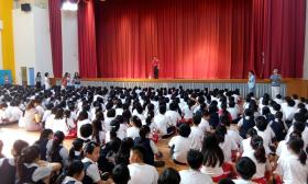為加強學生防災觀念與常識,學校協同臺中市政府消防局第八救災救護大隊文昌分隊,宣導學生防災知識與逃生技能。