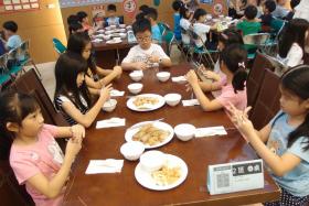 為什麼要學習用餐禮儀呢?因為表現適當的用餐禮儀可以為同桌的長輩或朋友留下美好的第一印象,成為大家稱讚的小紳士小淑女。本學期中式的用餐禮儀課程分為技巧、禮儀、文化等三大教學方向,帶領孩子從簡報教學、影片分享、實際操作與學習單的統整,深入了解用餐禮儀內涵與精神。 低年級學生是第一次學習中式的用餐禮儀,在簡報教學中,以了解筷子是中國傳統文化之美為主。從筷子的歷史與傳說來敘述形成筷箸的雛形;並從影片中分享,筷子不只是筷子,它可是中國傳統文化發展中有深厚的感情,有傳承、明禮、思念、關愛、睦鄰、守望與感恩等含意,它承載了太多古人的思想情感,讓孩子們都能體會正確的使用筷子是中國人的驕傲。緊接著介紹筷子正確的使用方式以及不可以用筷子做的事,看著所有同學們認真地練習與筆記,相信在平時的家庭聚餐一定能發揮所學!最後,我們來到了有東方之珠的美食天堂-香港,它薈萃了中西飲食文化,有道地的茶餐廳、有經典好吃的港式小吃等,準備一起到香港吃透透囉! 接下來孩子們分桌次進入餐廳,依照座號實際演練中式合菜的入座禮儀,活動的現場氛圍,有濃濃的香港老歌以及叮叮車正帶領著同學們遊歷香港著名的建築大樓。這次的活動有一個挑戰-「筷」上功夫,盤中放置不同難度的食物,考驗每位小朋友夾取的功力是否純熟,每位孩子緊張的專注自己的筷子和食物,希望能用筷子功夫為自己的班級贏得最多分,從入座到用餐禮儀的儀態,以及最後用餐完畢等評分結果,最後獲勝的班級可以得到香港奶茶作為獎勵點心呢!用餐過程中,為了讓孩子們皆能享用熱騰騰的餐點,學務處的老師們分批上菜,好吃的香港茶餐廳讓孩子們大快朵頤,三兩下就吃得盤底朝空,並在合菜禮儀中,學習使用公筷母匙、相互禮讓的好禮儀,期望每位同學都可以成為真正的小紳士小淑女。 每次的用餐禮儀,可以享用各國家的美食,和認識各地的文化特色,還有學習正確的用餐小知識,而且可以得到競賽後獲勝的小獎品呢!這麼豐富有趣的用餐禮儀,那我們一起期待下次的美食之旅吧!