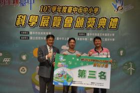 01校長與科展團隊獲頒國小組團體獎第一名。
