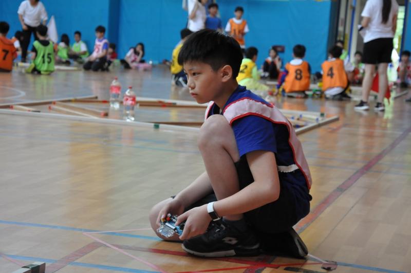 比賽很簡單,學生一人一組要通過設定的障礙物後,再取得自己組別顏色的球,一場四組誰能先將球運出就獲勝,學生要設定好程式,如在測試過程中有狀況就必須要重新編碼、改寫程式過程中培養問題解決能的養成,學生需要自行反覆探索問題,嘗試一個問題有多種不同解法,為了要將球運出來Science Teacher Dillon在寒假期間將自走車進行一番設計,車身的前臂長度、車殼的卡榫有精密的計算,在運球過程中車子及車身不會分開,孩子也在車身進行美的藝術呈現,許多可愛造型車子紛紛出籠,讓比賽現場色彩繽紛降低比賽的緊張氣氛!