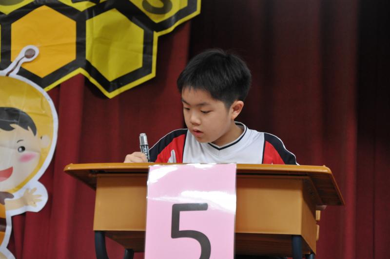 今年的比賽門檻又加高許多,選手要經歷的考驗較以往更為嚴苛,各學年同學不斷的幫台上同學加油,場面十分的熱鬧,讓代表出場比賽的選手雖有壓力但為班上爭光,各個都使出十二萬分的專注力;迎戰所有困難單字,每每選手寫出裁判所讀出的題目,只要答對都會引起台下一陣的讚嘆聲!